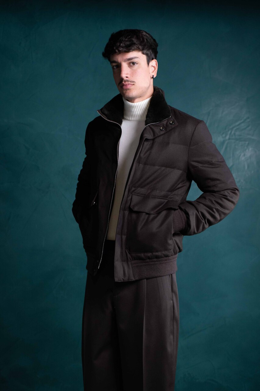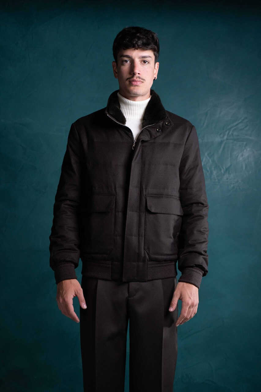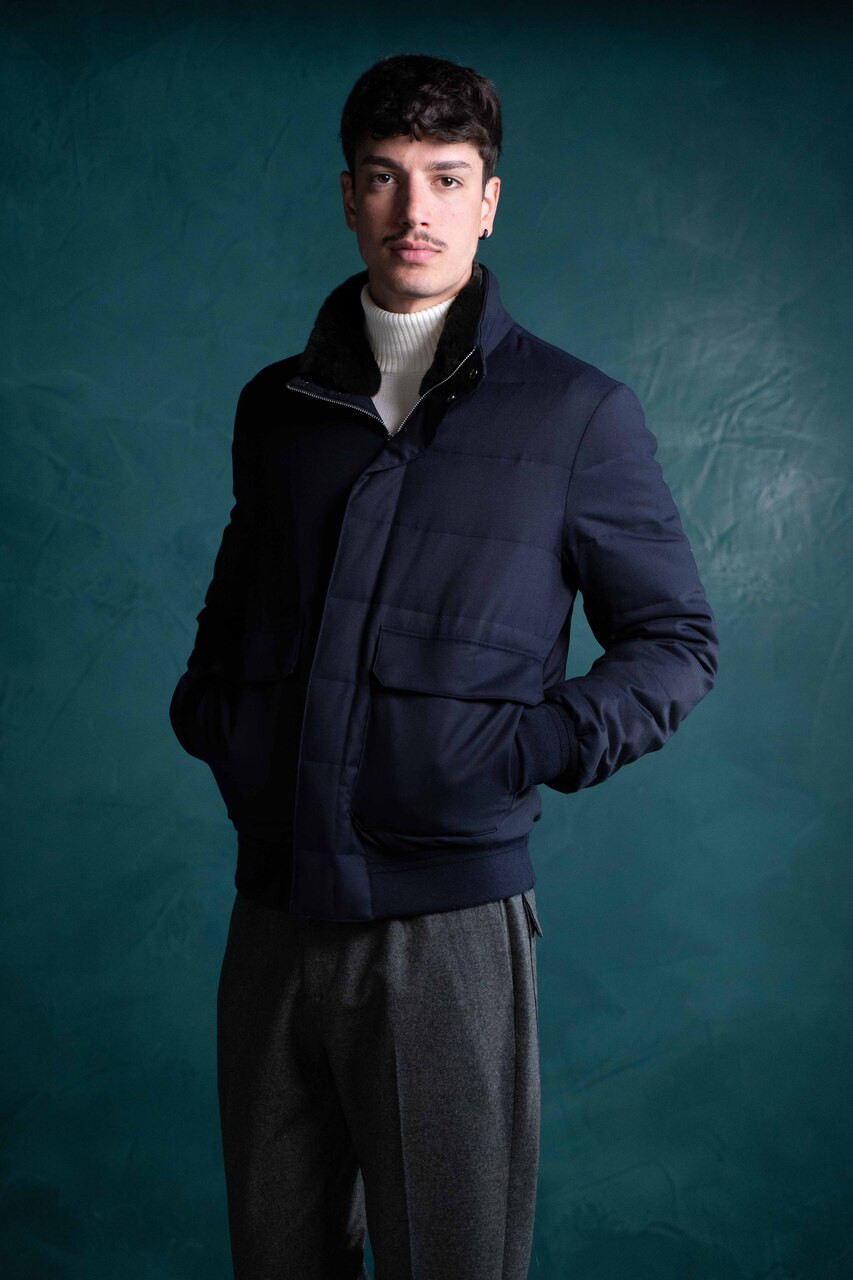 Bomber in lana idrorepellente di Vitale Barberis Canonico di Montecore.