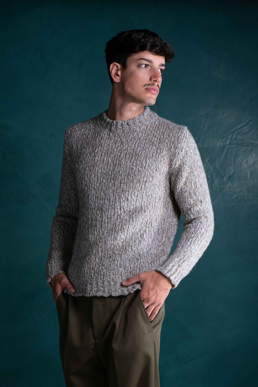 Girocollo lavorazione filato macro tweed di Settefili Cashmere